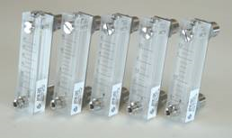 Version AFMThe Ankersmid flowmeters series AFM are consisting of a vertical, internal conical glass tube widening towards the top in which a float can move freely up- and downwards. With the integrated needle valve the flow rate can be adjusted. The sample gas flows upwards through the tube and lifts the float until a radial clearance occurs between the tube wall and the float so that forces affecting the body are in equilibrium. Every position of the float corresponds to a certain flow which can be read on a calibrated scale.