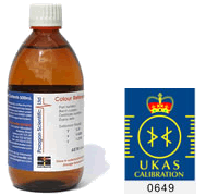 Certified color reference standards are supplied with full traceability to internationally recognized standards, either UKAS to ISO 17025 (ASTM, Gardner & Saybolt Color) or the ISO 9001 quality system (Pt-Co color). Each standard comes in a 500 ml bottle with a 12-month guarantee of color stability and full certification including MSDS.