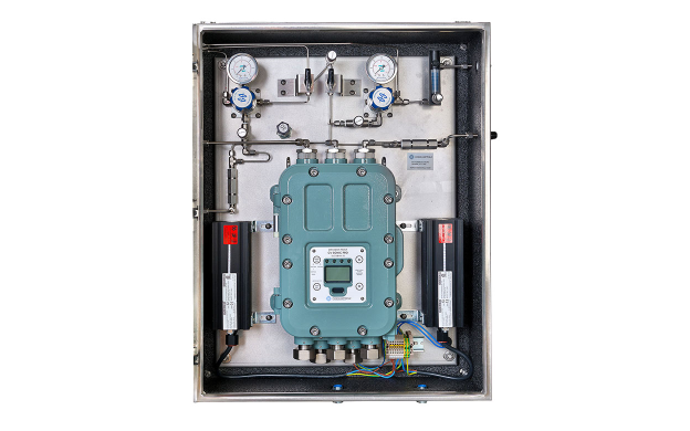 This calorimeter is a fixed gas calorimeter in a flame-proof enclosure (explosion-proof class: Ex dⅡB+H2 T4) designed for continuous, fast-response measurement of the "Calorific value," "Density," and "WOBBE index" of various fuel gases such as natural gas, coke oven gas, blast furnace gas, converter gas, biomass gas, and biogas.
